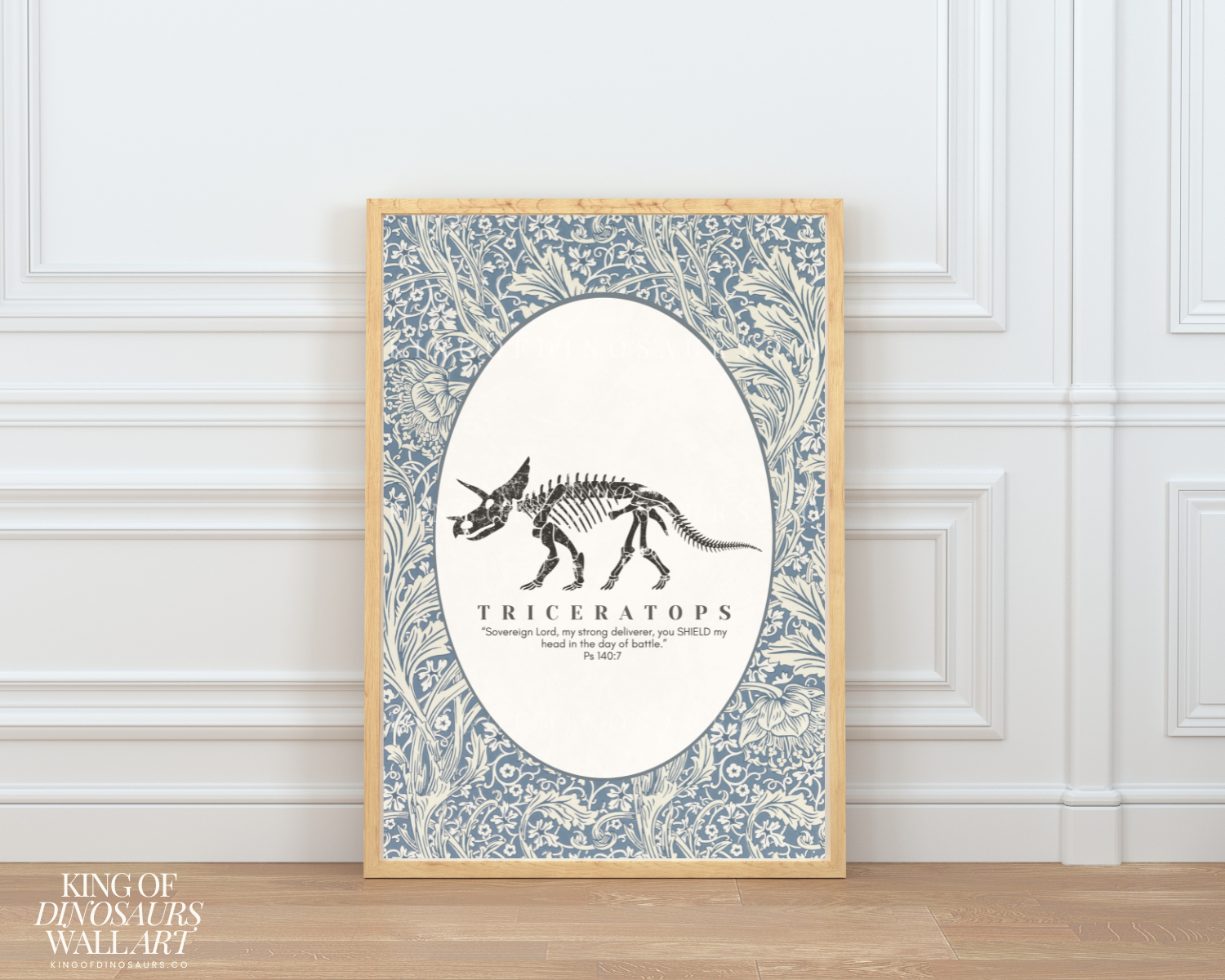 Introduce your little ones to the wonders of dinosaurs and the teachings of Jesus with our King of Dinosaurs digital art download. Perfect for parents who love Jesus and have kids who love dinosaurs, this artwork features a beautifully detailed dinosaur fossil in a vintage oval frame. The beige and ivory ticking stripe background adds a neutral touch, making it ideal for any kids’ nursery. Accompanied by a coordinating Bible verse to go with each dinosaur, this piece is a perfect blend of education and faith, helping you teach your kids about Jesus in a fun and engaging way.