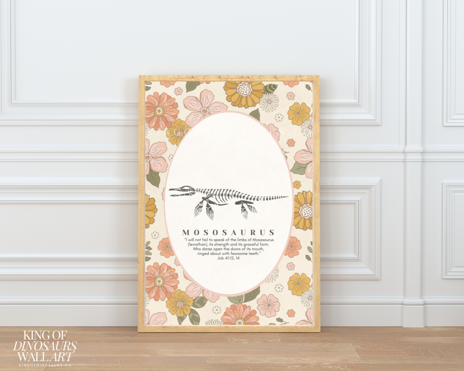Introduce your little ones to the wonders of dinosaurs and the teachings of Jesus with our King of Dinosaurs digital art download. Perfect for parents who love Jesus and have kids who love dinosaurs, this artwork features a beautifully detailed dinosaur fossil in a vintage oval frame. The beige and ivory ticking stripe background adds a neutral touch, making it ideal for any kids’ nursery. Accompanied by a coordinating Bible verse to go with each dinosaur, this piece is a perfect blend of education and faith, helping you teach your kids about Jesus in a fun and engaging way.