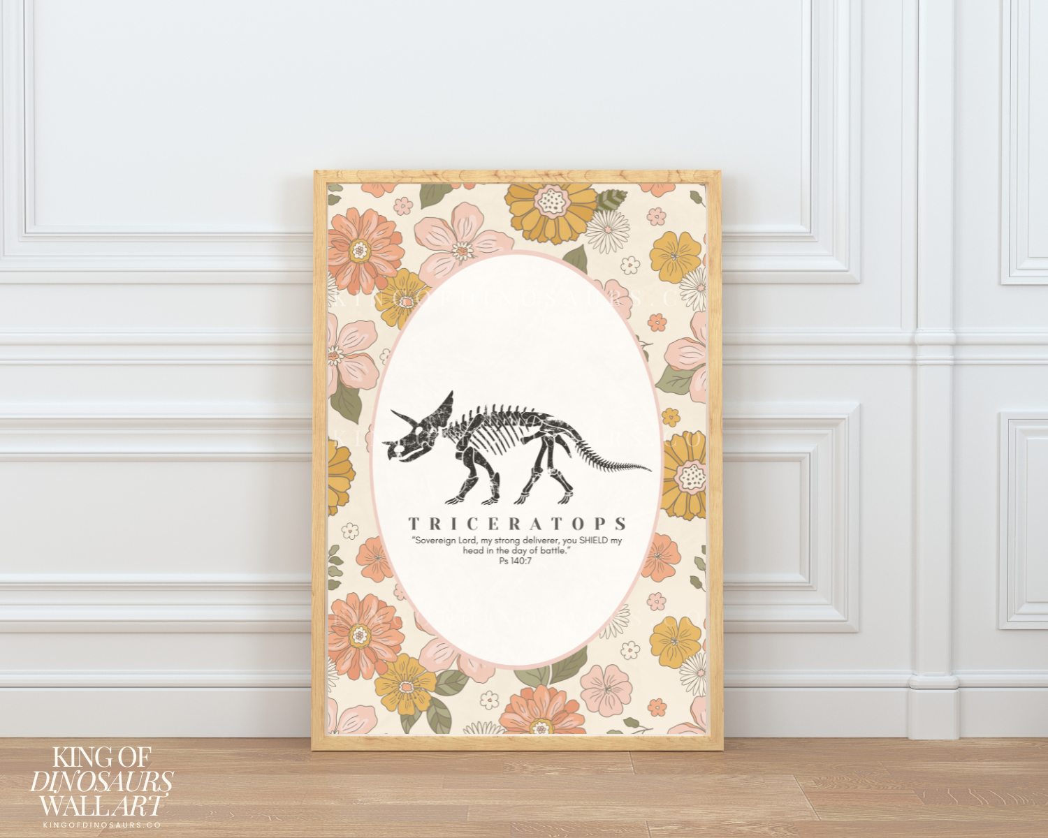 Introduce your little ones to the wonders of dinosaurs and the teachings of Jesus with our King of Dinosaurs digital art download. Perfect for parents who love Jesus and have kids who love dinosaurs, this artwork features a beautifully detailed dinosaur fossil in a vintage oval frame. The beige and ivory ticking stripe background adds a neutral touch, making it ideal for any kids’ nursery. Accompanied by a coordinating Bible verse to go with each dinosaur, this piece is a perfect blend of education and faith, helping you teach your kids about Jesus in a fun and engaging way.